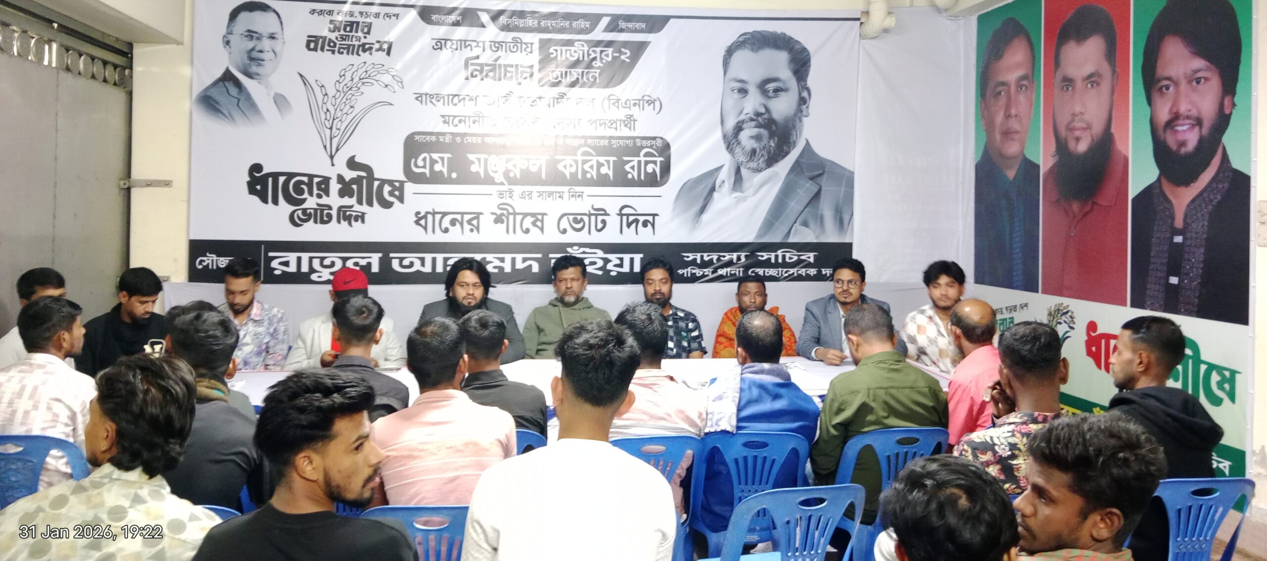 আসন্ন ত্রয়োদশ জাতীয় সংসদ নির্বাচন–২০২৬ উপলক্ষে গাজীপুর–২ আসনে বাংলাদেশ জাতীয়তাবাদী দল (বিএনপি) মনোনীত সংসদ সদস্য পদপ্রার্থী এম. মঞ্জুরুল করিম রনি’কে বিজয়ের লক্ষ্যে নির্বাচনী প্রচারণা জোরদার করা হয়েছে।
